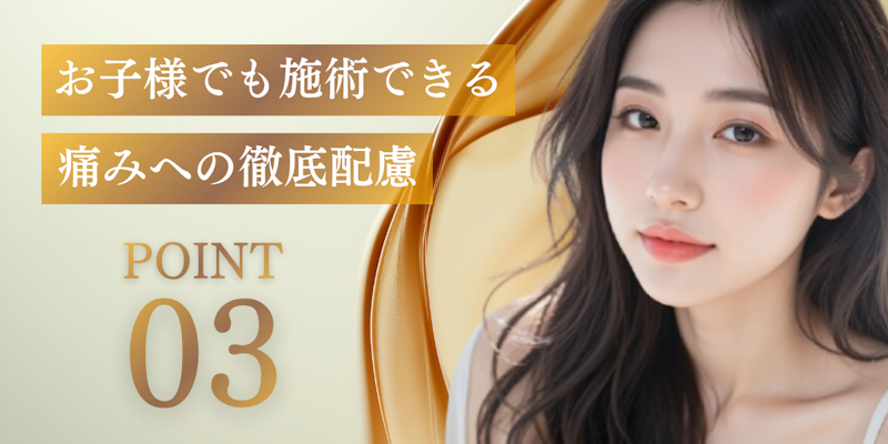 痛みや腫れを最小限に抑えるよう、独自開発された治療なので、二重整形が初めての方でも安心して治療を受けられます。